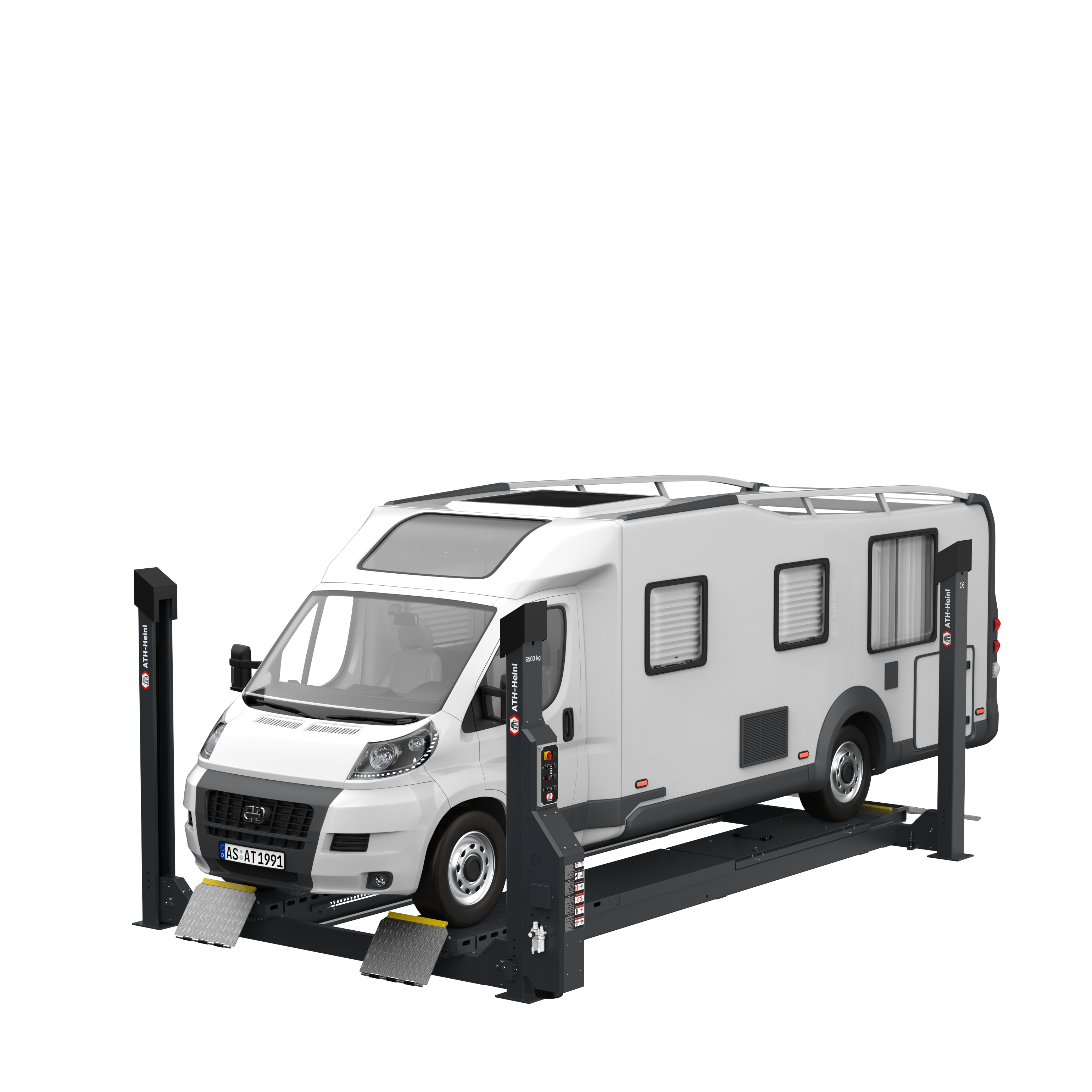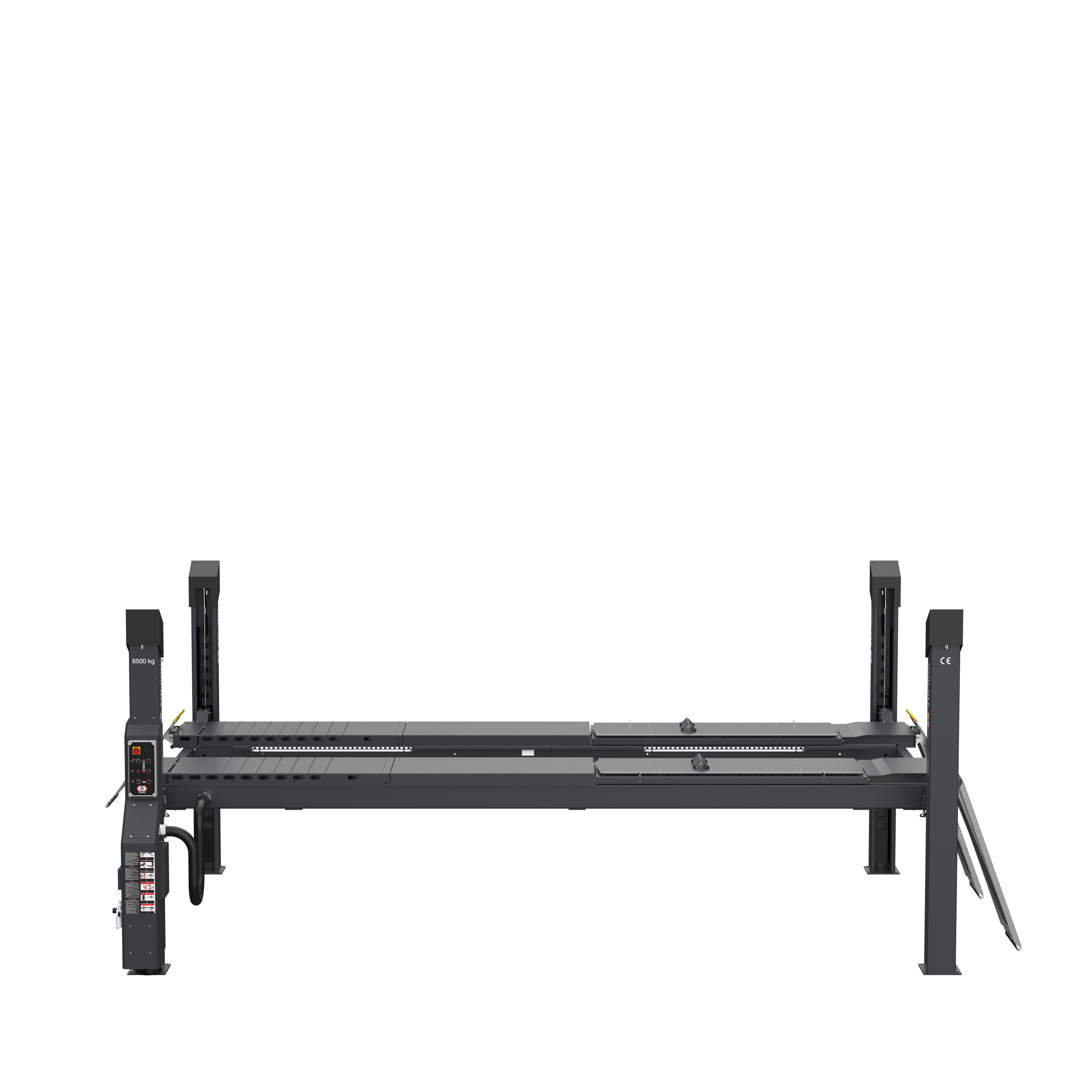 - Elévateur électro-hydraulique à 4 colonnes avec unité de levage rapide et fonction d‘abaissement en fonction de la charge