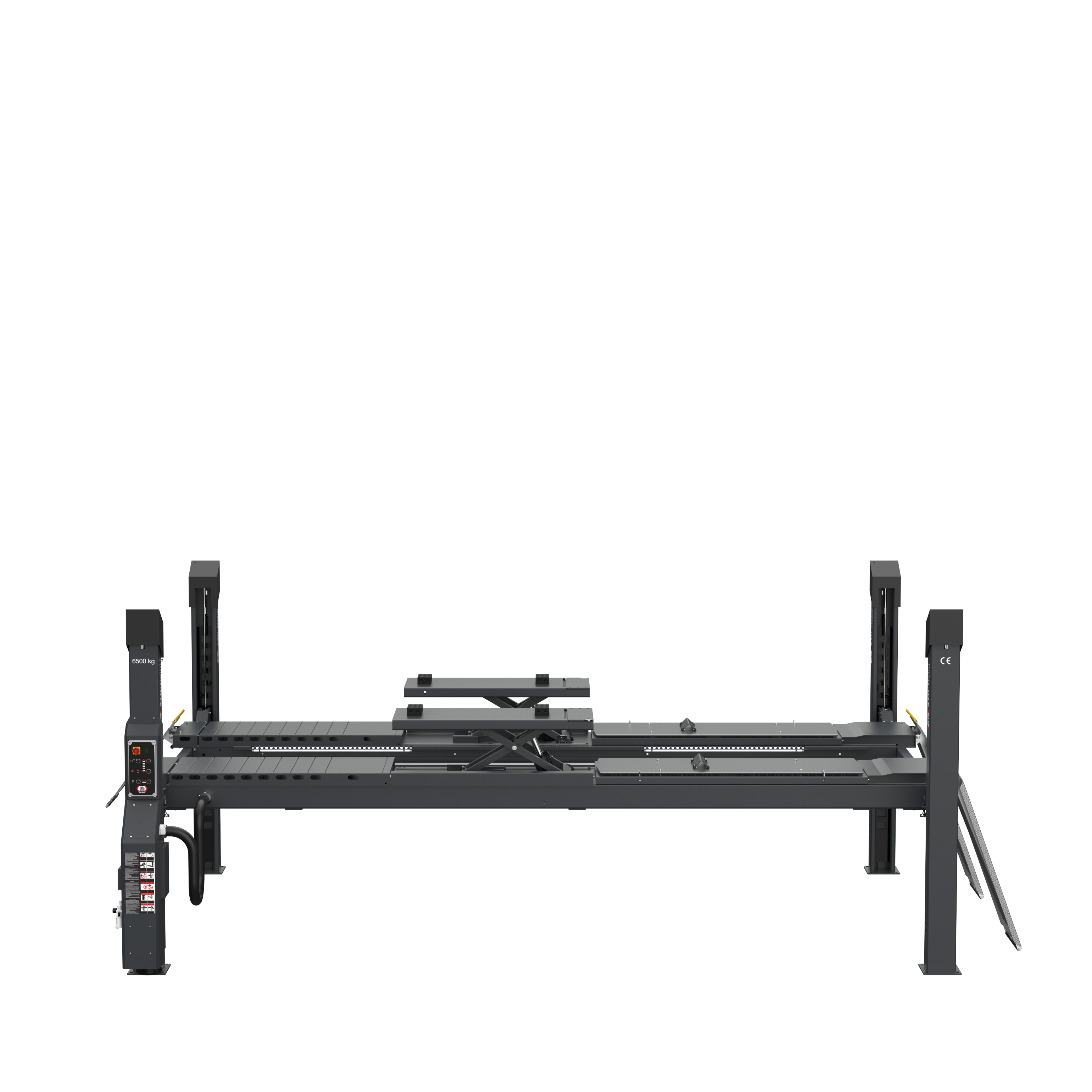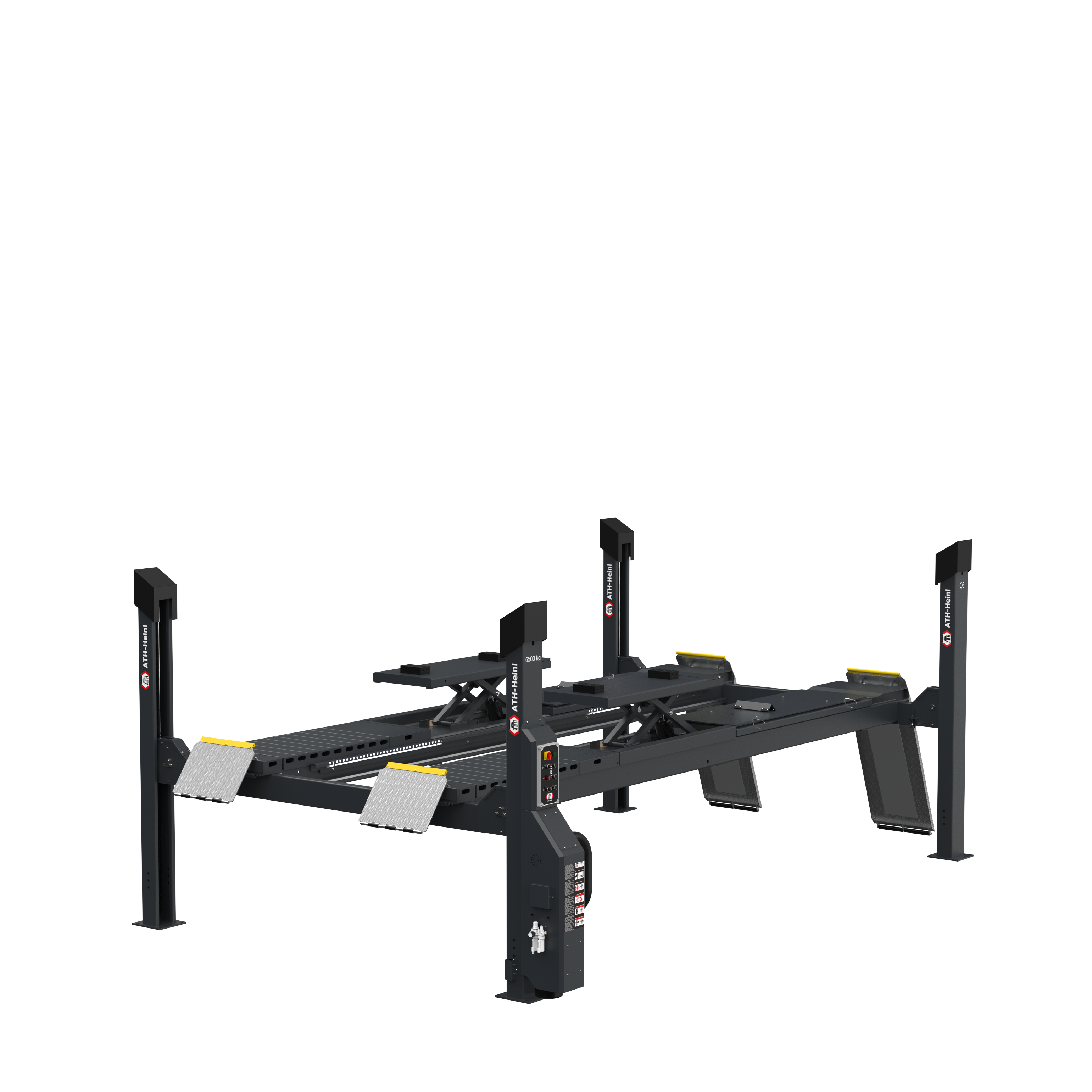- Elévateur électro-hydraulique à 4 colonnes avec unité de levage rapide et fonction d‘abaissement en fonction de la charge
